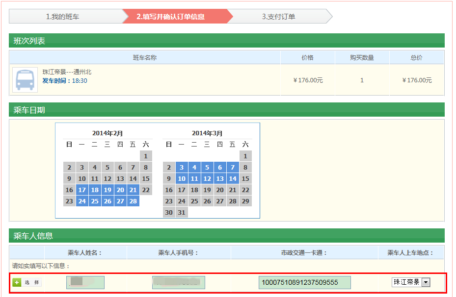 为多人预订时,乘车人手机号码、市政交通一卡通卡号均不能重复。