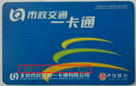 市政交通一卡通卡号由17位或20位数字组成,印于卡片表面(图一红框处)。