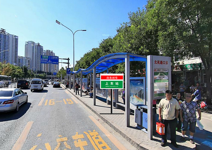 A:商务班车在明显位置设置标识,方便乘客识别和乘坐。请您提前在上车站点候车,上车站点的具体位置详见“班车介绍”,班车将按时到站。