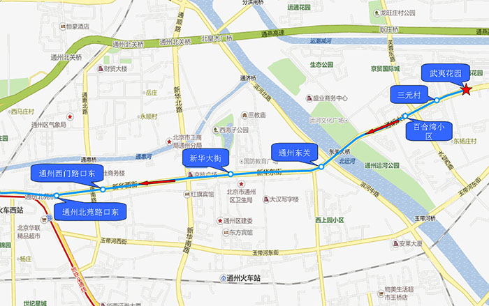 | 2020-5-8 | 7:00 | 75分钟 | 1.武夷花园 2.三元村 3.百合湾小区 4.通州东关西 5.新华大街 6.通州西门路口东 7.通州北苑路口东 |
