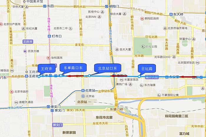 1.日坛路 2.北京站口东 3.东单路口东 4.王府井 |