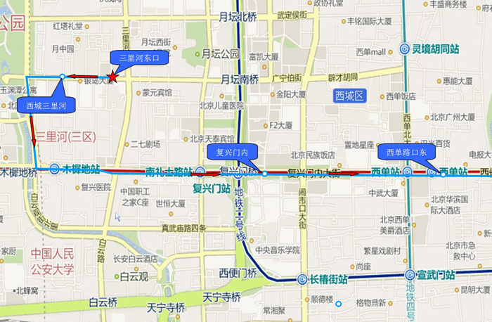 上车站点2:西城三里河(返回上车站点分布示意图)