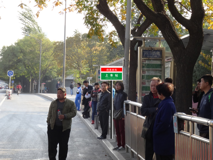 A:商务班车在明显位置设置标识,方便乘客识别和乘坐。请您提前在上车站点候车,上车站点的具体位置详见“班车介绍”,班车将按时到站。