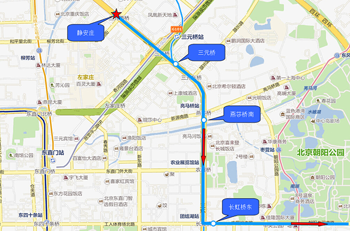 上车站点2:三元桥(返回上车站点分布示意图)