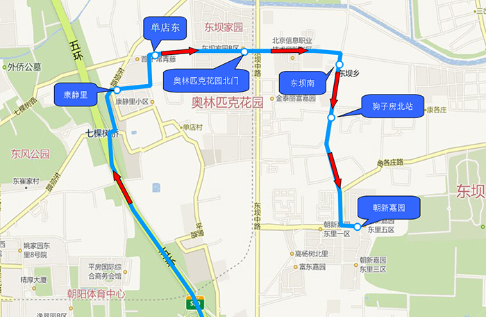 1.康静里 2.单店东 3.奥林匹克花园北门 4.东坝南 5.驹子房北站 6.朝新嘉园 |