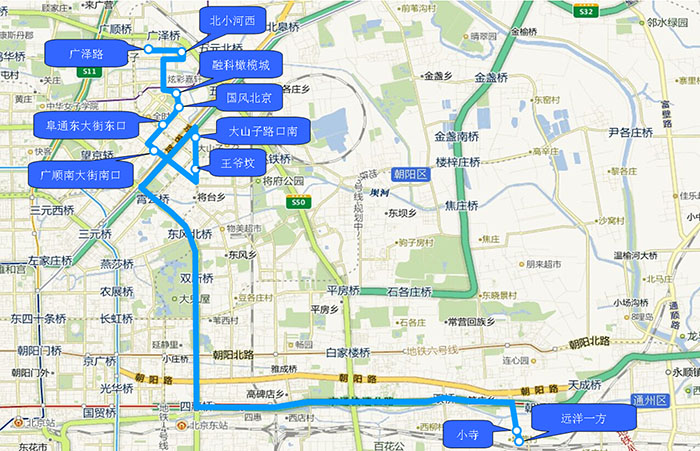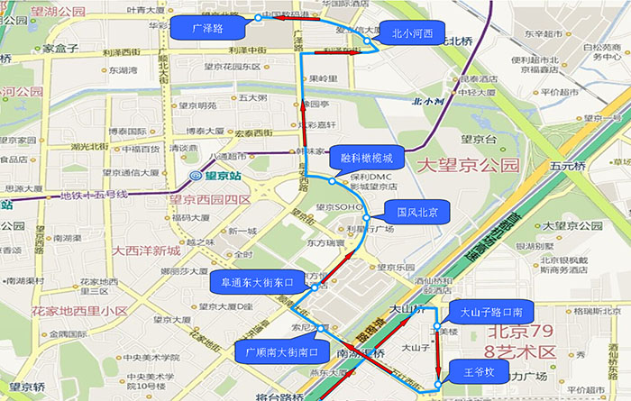 1.大山子路口南 2.王爷坟 3.广顺南大街南口 4.阜通东大街东口 5.国风北京 6.融科橄榄城 7.利泽东街东口 8.广泽路 |