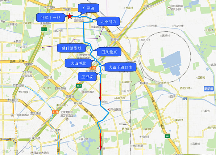 | 2020-5-8 | 18:00 | 90分钟 | 1.利泽中一路 2.广泽路 3.北小河西 4.融科橄榄城 5.国风北京 6.阜通东大街东口 7.广顺南大街南口 |