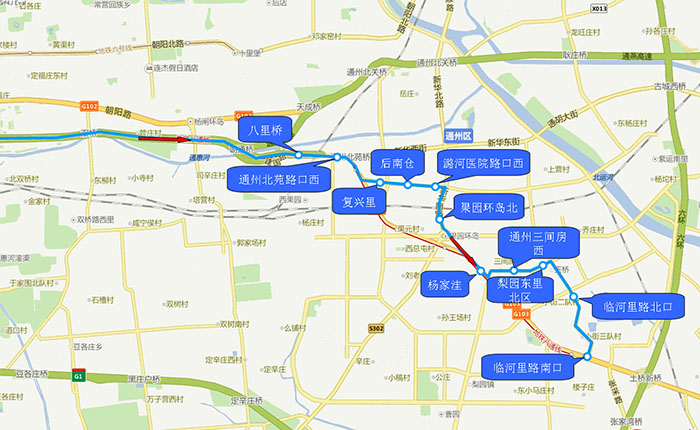 1.通州北苑路口南 2.复兴里 3.后南仓 4.潞河医院路口西 5.果园环岛北 6.杨家洼 7.通州三间房西 8.梨园东里北区 9.临河里路北口 10.临河里路南口 |