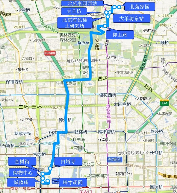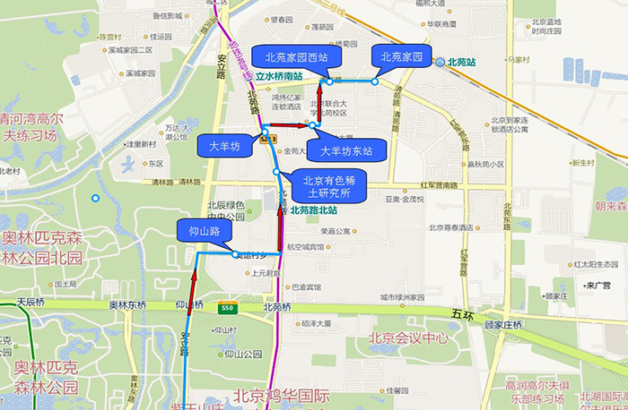 1.仰山路 2.北京有色稀土研究所 3.大羊坊 4.大羊坊东站 5.北苑家园西站 6.北苑家园 |