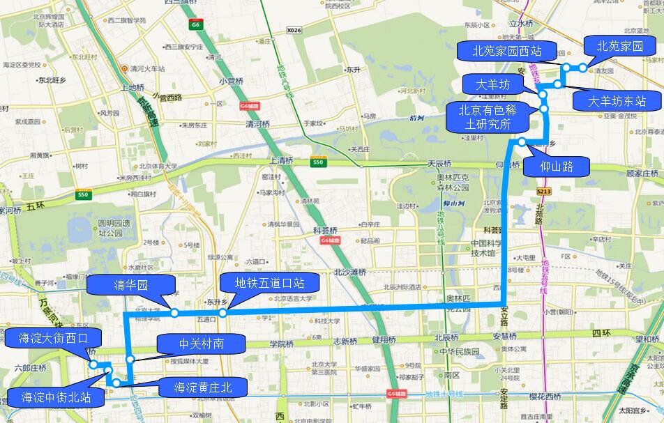 6.海淀大街西口预计走行时间 70分钟 里 程 19.2公里