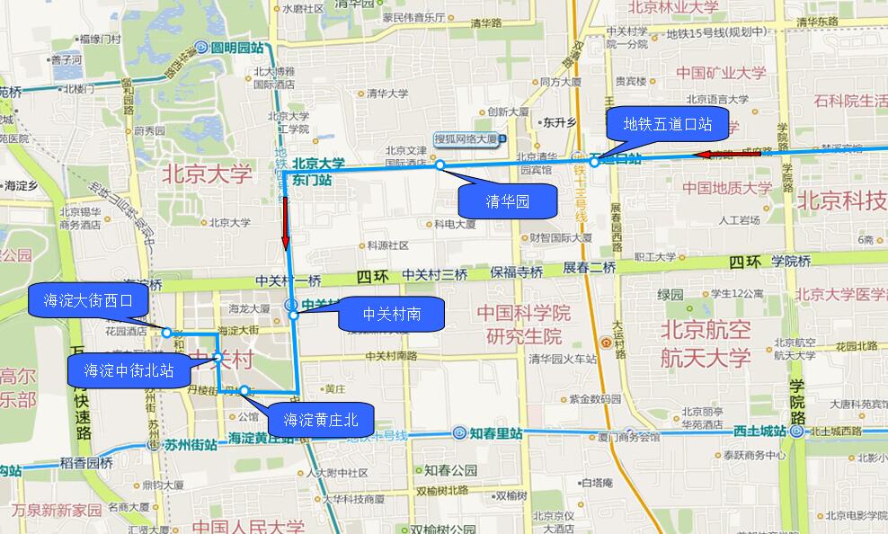 1.地铁五道口站 2.清华园 3.中关村南 4.海淀黄庄北 5.海淀中街北站 6.海淀大街西口 |