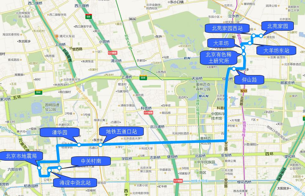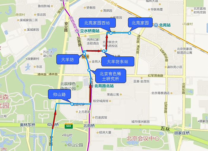 1.仰山路 2.北京有色稀土研究所 3.大羊坊 4.大羊坊东站 5.北苑家园西站 6.北苑家园 |
