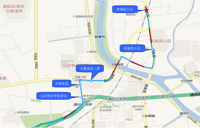 | 2020-5-9 | 7:40 | 60分钟 | 1.翠福园小区 2.西潞苑小区 3.天赐良园二期 4.天赐良园 5.北京物资学院南站 |