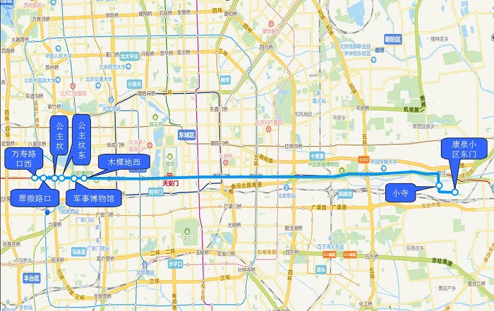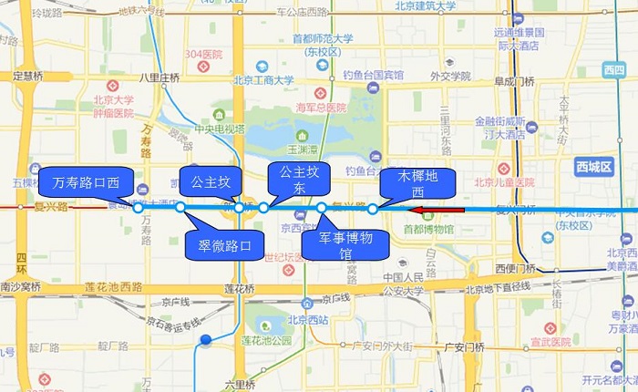 1.木樨地西 2.军事博物馆 3.公主坟东 4.公主坟 5.翠微路口 6.万寿路口西 |