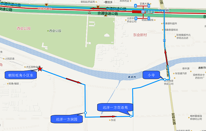 | 2020-5-12 | 7:40 | 70分钟 | 1.朝阳旺角小区东 2.远洋一方润园 3.远洋一方花语苑 4.小寺 |