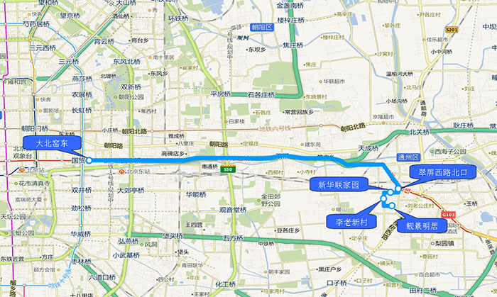 发车时间 18:15 到达时间 18:50 出发城区 朝阳区 到达城区 通州区 出发商圈 国贸 到达商圈 果园 出发地点 大北窑东 到达地点 靓景明居 上车地点 1.大北窑东 下车地点 1.翠屏西路北口