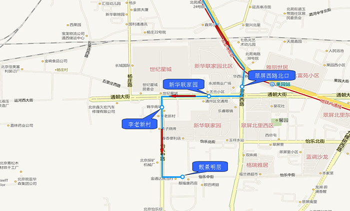 1.翠屏西路北口 2.新华联家园 3.李老新村 4.靓景明居 |