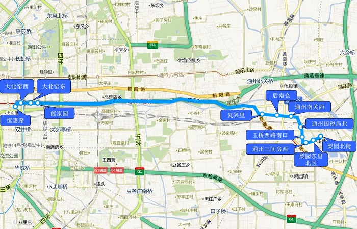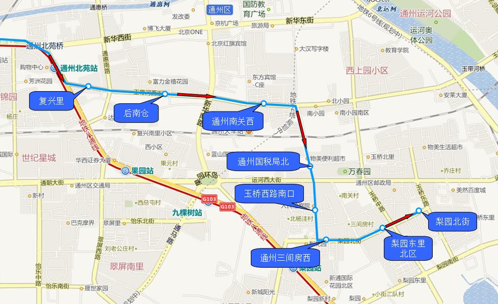 1.复兴里 2.后南仓 3.通州南关西 4.通州国税局北 5.玉桥西路南口 6.通州三间房西 7.梨园东里北区 8.梨园北街 |