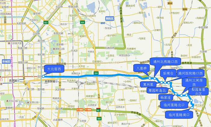 1.八里桥 2.通州北苑路口西 3.复兴里 4.后南仓 5.潞河医院路口西 6.果园环岛北 7.杨家洼 8.通州三间房西 9.梨园东里北区 10.临河里路北口 11.临河里路南口 |
