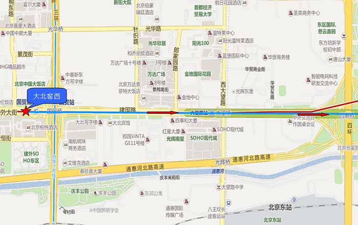 发车时间 18:00 到达时间 19:00 出发城区 朝阳区 到达城区 通州区 出发商圈 国贸 到达商圈 土桥 出发地点 大北窑西 到达地点 临河里路南口 上车地点 1.大北窑西 下车地点 1.八里桥