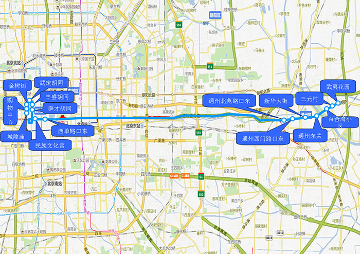1.通州北苑路口东 2.通州西门路口东 3.新华大街 4.通州东关 5.百合湾小区 6.三元村 7.武夷花园 |