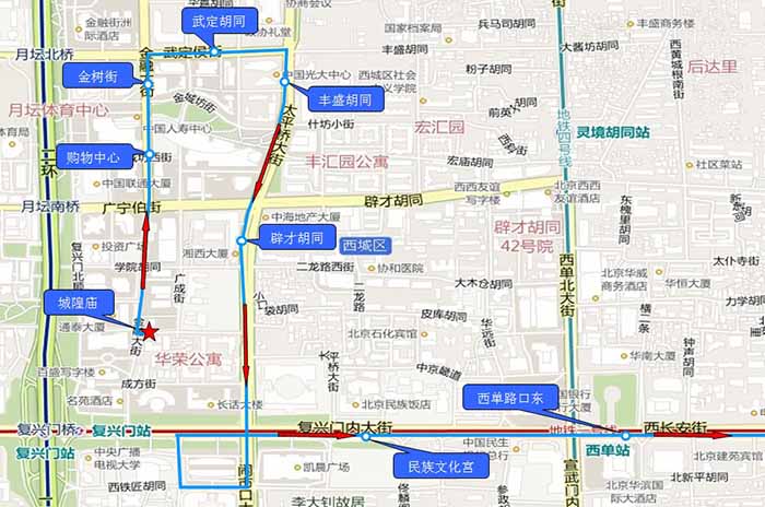 | 2020-5-17 | 18:10 | 100分钟 | 1.城隍庙 2.购物中心 3.金树街 4.武定胡同 5.丰盛胡同 6.辟才胡同 7.民族文化宫 8.西单路口东 |