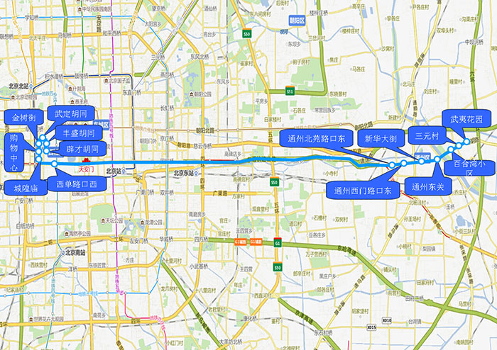 上车站点4:通州东关(返回上车站点分布示意图)