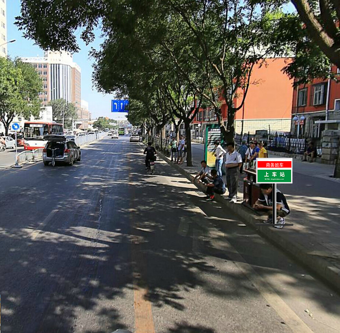 A:商务班车在明显位置设置标识,方便乘客识别和乘坐。请您提前在上车站点候车,上车站点的具体位置详见“班车介绍”,班车将按时到站。