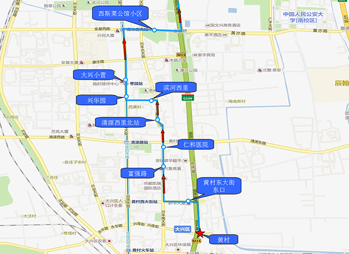 | 2020-5-18 | 7:00 | 90分钟 | 1.黄村 2.黄村东大街东口 3.富强路 4.仁和医院 5.清源西里北站 6.滨河西里 7.兴华园 8.大兴小营 9.西斯莱公馆小区 |