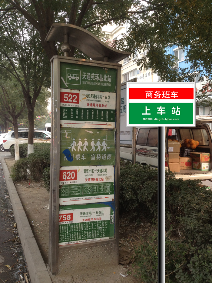 A:商务班车在明显位置设置标识,方便乘客识别和乘坐。请您提前在上车站点候车,上车站点的具体位置详见“班车介绍”,班车将按时到站。