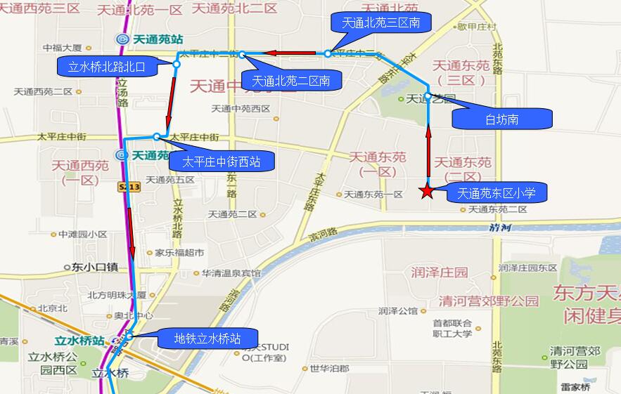 | 2020-5-19 | 7:20 | 70分钟 | 1.天通苑东区小学 2.白坊南 3.天通北苑三区南 4.天通北苑二区南 5.立水桥北路北口 6.太平庄中街 7.地铁立水桥站 |