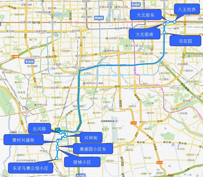 上车站点3:大北窑南(返回上车站点分布示意图)