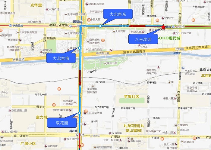 上车站点2:大北窑东(返回上车站点分布示意图)