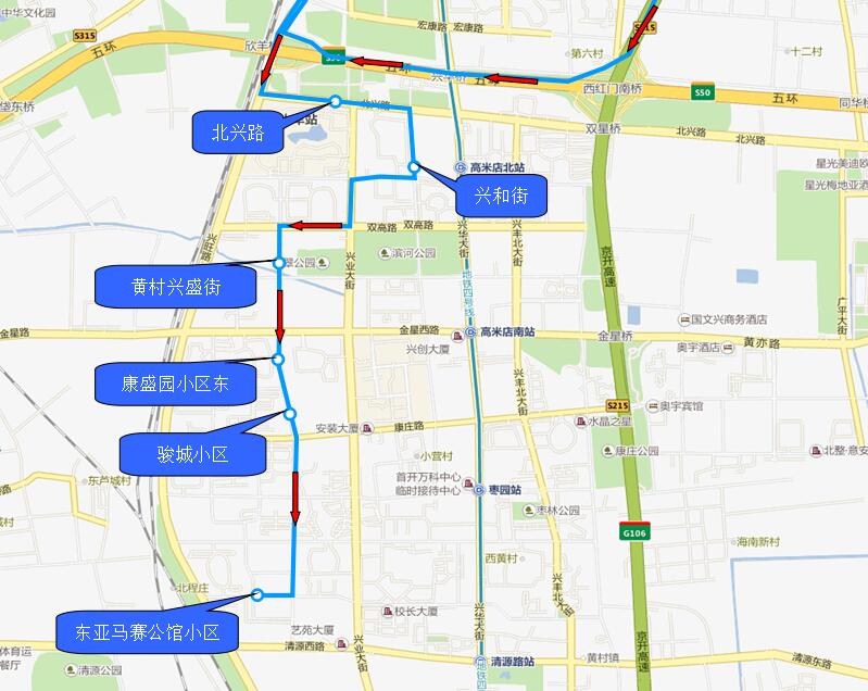 1.北兴路 2.兴和街 3.黄村兴盛街 4.康盛园小区东 5.骏城小区 6.东亚马赛公馆小区 |
