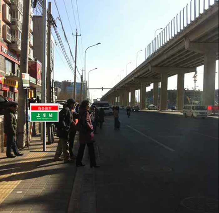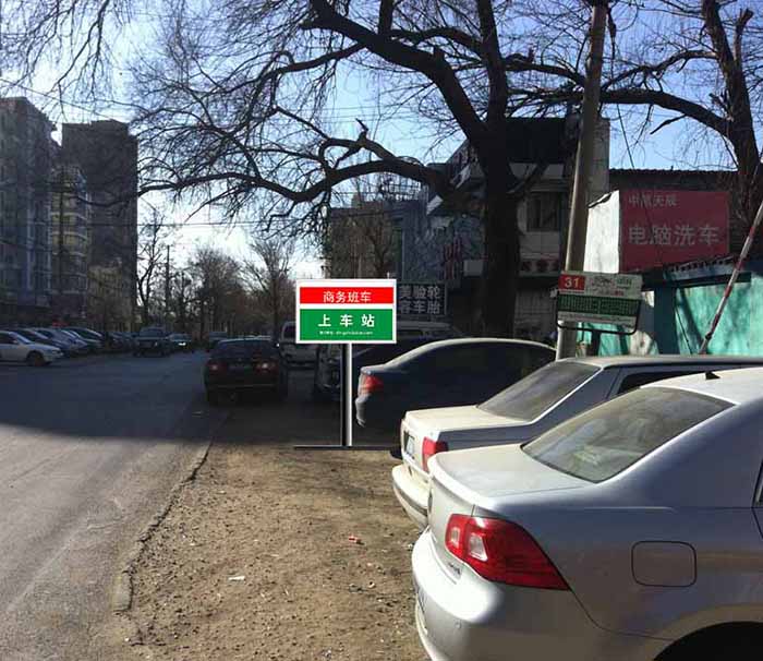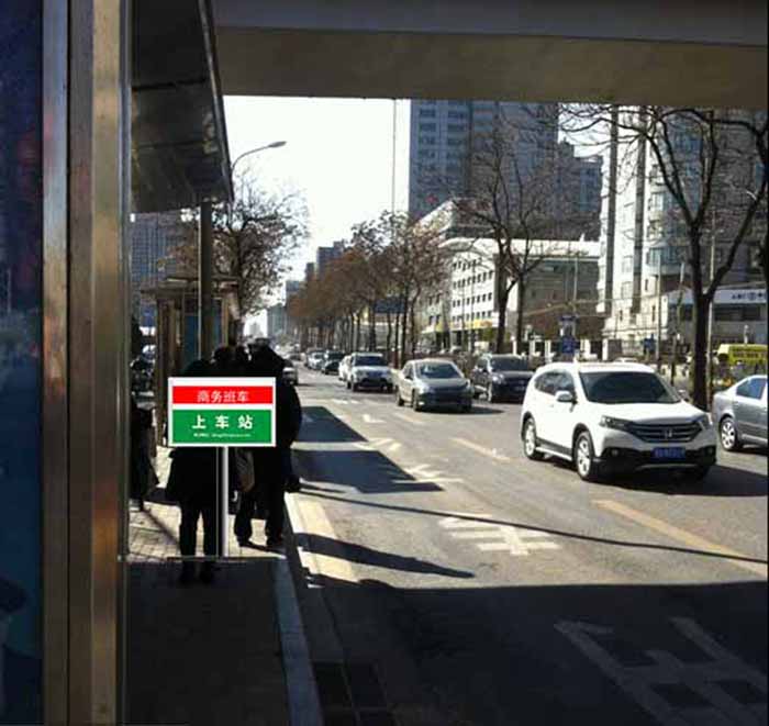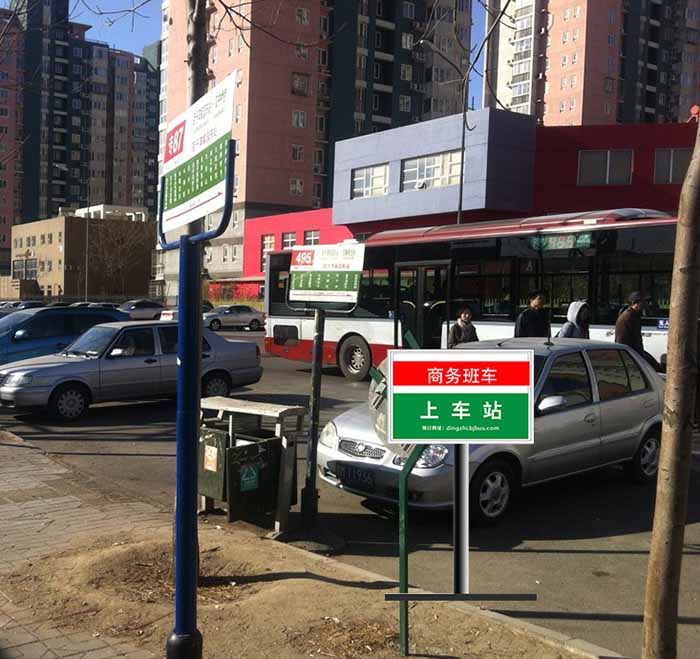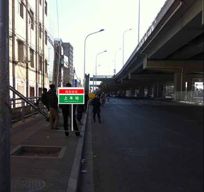 A:商务班车在明显位置设置标识,方便乘客识别和乘坐。请您提前在上车站点候车,上车站点的具体位置详见“班车介绍”,班车将按时到站。