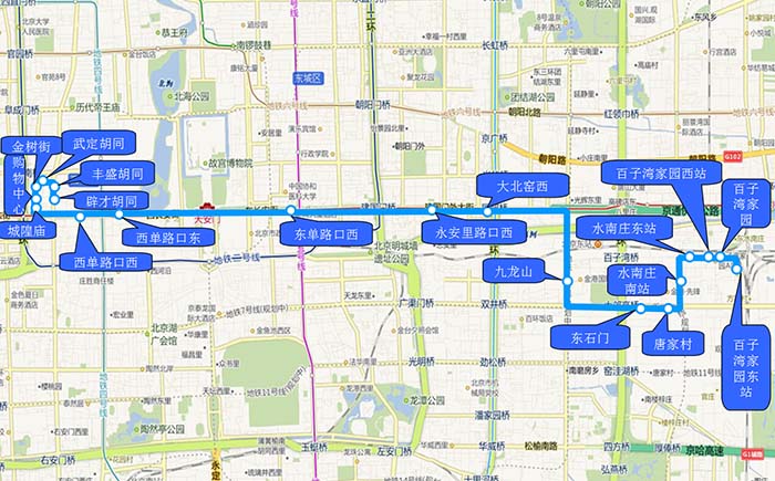 | 2020-5-23 | 7:45 | 55分钟 | 1.百子湾家园东站 2.百子湾家园 3.百子湾家园西站 4.水南庄东站 5.水南庄南站 6.唐家村 7.东石门 8.九龙山 |
