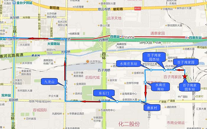 上车站点4:百子湾东里(返回上车站点分布示意图)