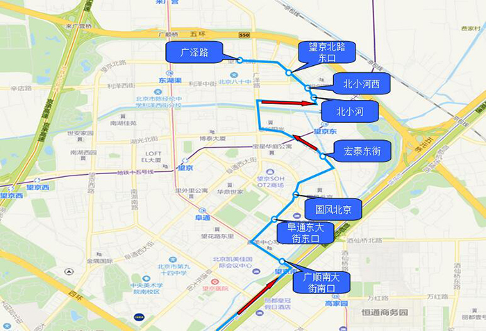 1.广顺南大街南口 2.阜通东大街东口 3.国风北京 4.宏泰东街 5.北小河 6.利泽东街东口 7.望京北路东口 8.广泽路 |