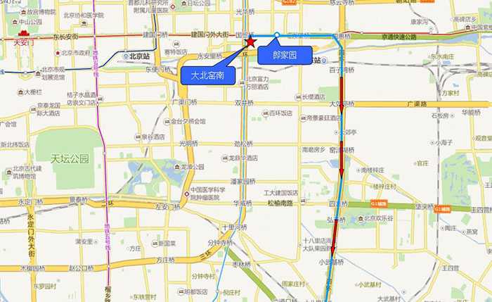 发车时间 17:50 到达时间 19:00 出发城区 朝阳区 到达城区 大兴区 出发商圈 国贸 到达商圈 亦庄 出发地点 大北窑南 到达地点 天宝园六里 上车地点 1.大北窑南