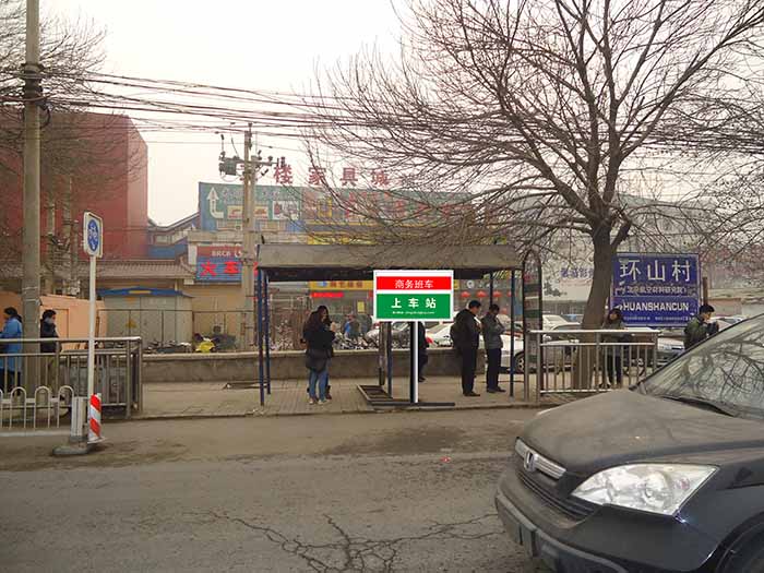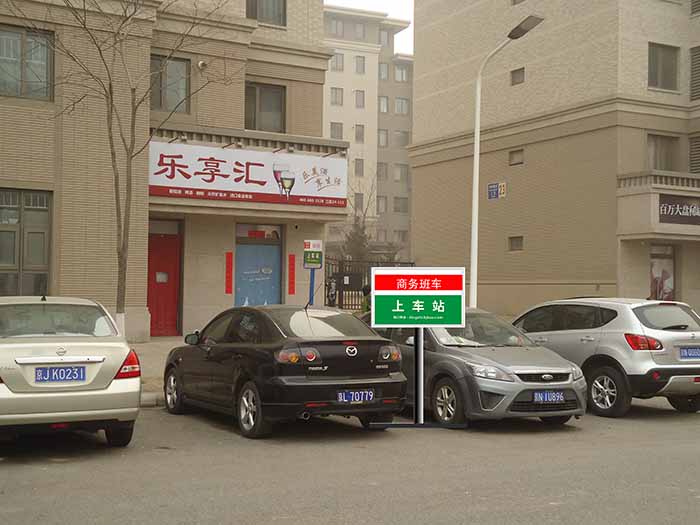 A:商务班车在明显位置设置标识,方便乘客识别和乘坐。请您提前在上车站点候车,上车站点的具体位置详见“班车介绍”,班车将按时到站。