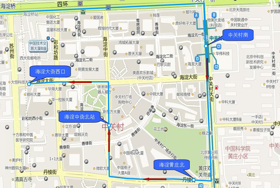 1.中关村南 2.海淀黄庄北 3.海淀中街北站 4.海淀大街西口 |