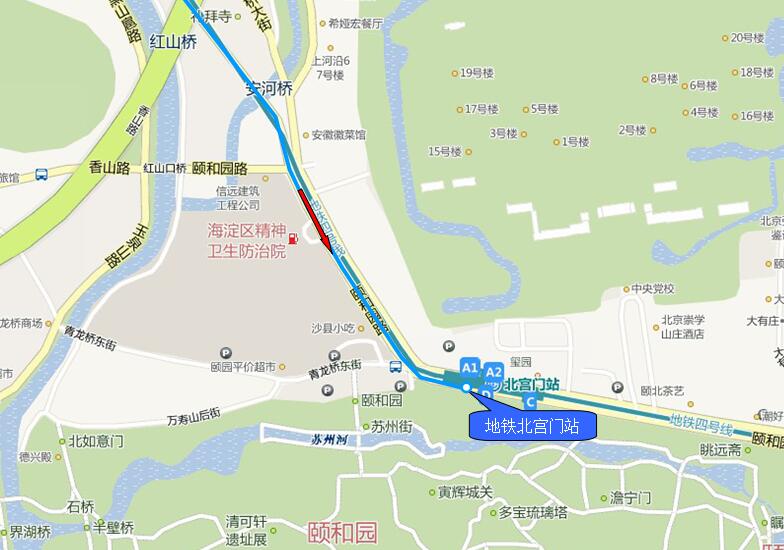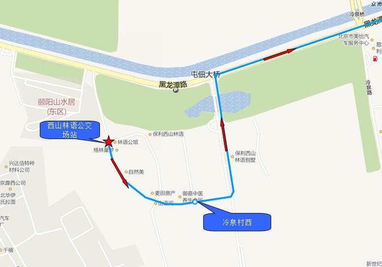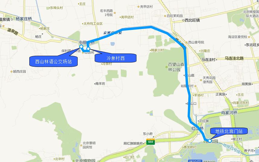 2.冷泉村西下车地点 1.地铁北宫门站 预计走行时间 40分钟 里 程 10.5公里