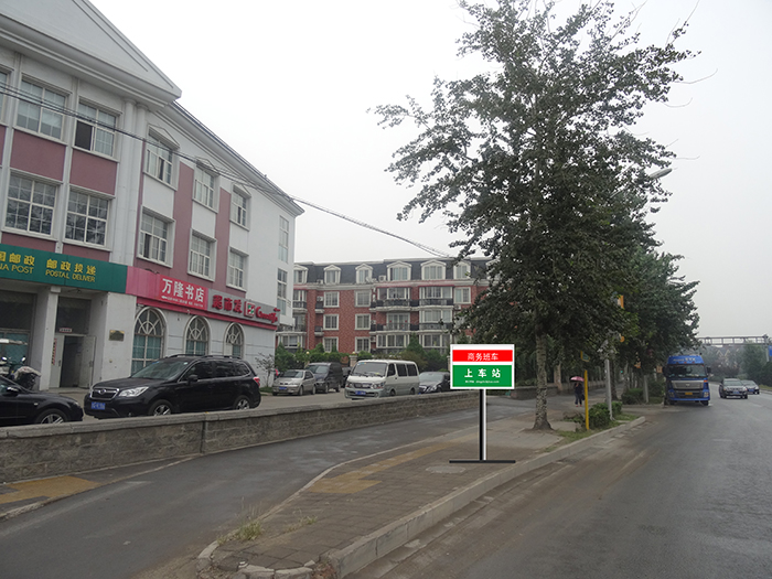 A:商务班车在明显位置设置标识,方便乘客识别和乘坐。请您提前在上车站点候车,上车站点的具体位置详见“班车介绍”,班车将按时到站。