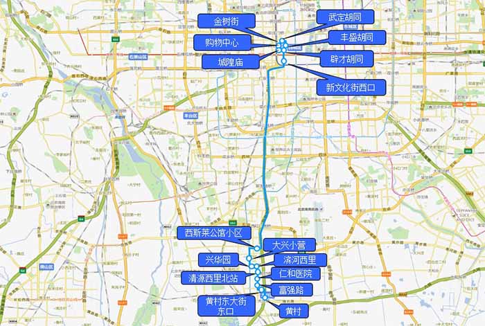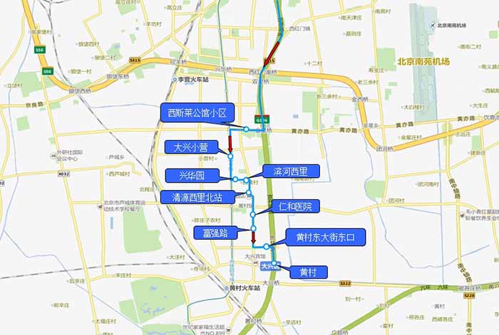 1.西斯莱公馆小区 2.大兴小营 3.兴华园 4.滨河西里 5.清源西里北站 6.仁和医院 7.富强路 8.黄村东大街东口 9.黄村 |