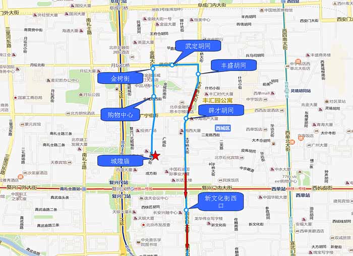 上车站点5:丰盛胡同(返回上车站点分布示意图)