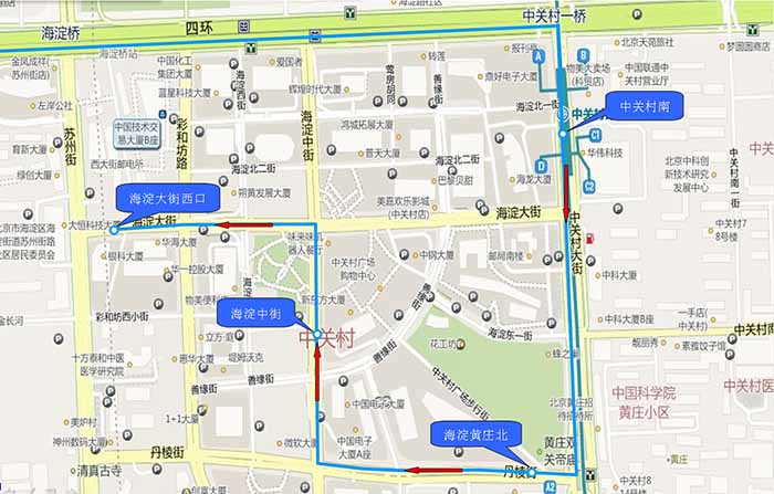 1.中关村南 2.海淀黄庄北 3.海淀中街北站 4.海淀大街西口 |