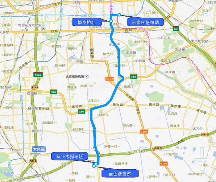 发车时间 6:50 到达时间 7:30 出发城区 大兴区 到达城区 丰台区 出发商圈 孙村乡 到达商圈 宋家庄 出发地点 金色漫香郡 到达地点 宋家庄枢纽站 上车地点 1.金色漫香郡
