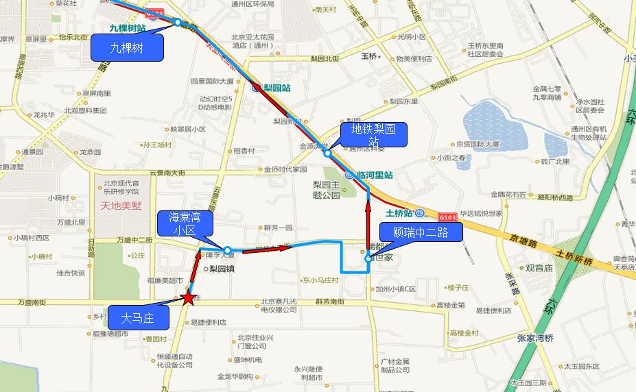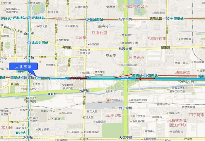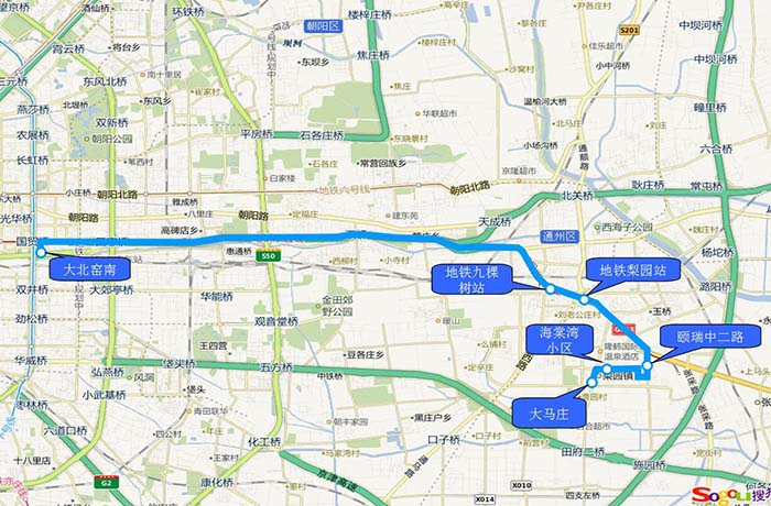 5.九棵树下车地点 1.大北窑东 预计走行时间 60分钟 里 程 23公里