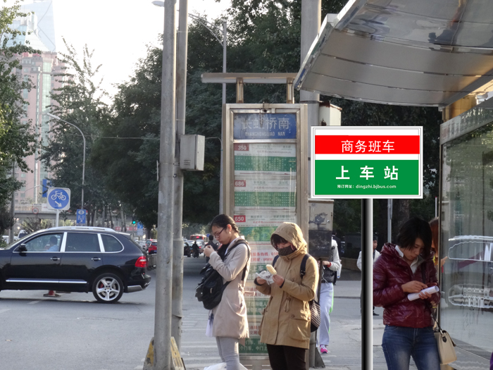 Q:商务班车有什么特殊标识?如何找到我要乘坐的班车?