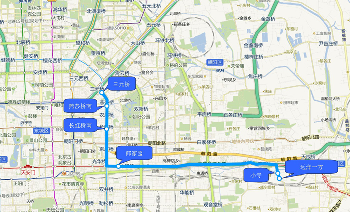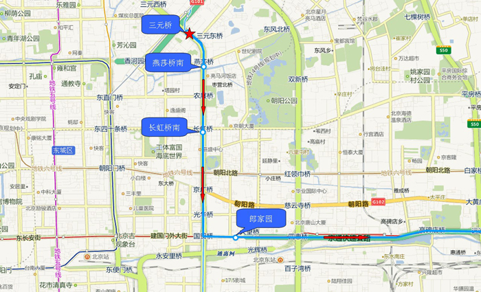 | 2020-6-1 | 17:45 | 50分钟 | 1.三元桥 2.燕莎桥南 3.长虹桥南 4.郎家园 |